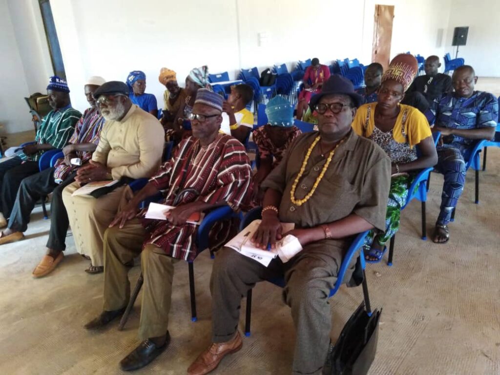 La cérémonie de clôture s’est déroulée à la Maison des Jeunes de Tandjoaré 2, réunissant 19 participants (8 femmes dont 6 femmes handicapées et 11 hommes dont 1 homme handicapé) issus de divers horizons institutionnels et communautaires, témoignant ainsi de l’importance accordée au projet. Parmi eux figuraient notamment le Préfet de Tandjoaré, le Maire de la commune, le Directeur préfectoral de l’Action sociale, des chefs traditionnels et religieux, des leaders communautaires ainsi que des femmes handicapées bénéficiaires directes du programme. Un débat très intéressant et instructif a permis d’aboutir à plusieurs recommandations structurantes pour l’avenir à savoir de: continuer une campagne renforcée de sensibilisation auprès des hommes et familles sur la co-responsabilité dans la lutte contre les VBG, la consolidation du suivi post-projet et de l’accompagnement psychologique, la promotion de groupements économiques féminins pour renforcer l’entraide et la pérennité des initiatives.